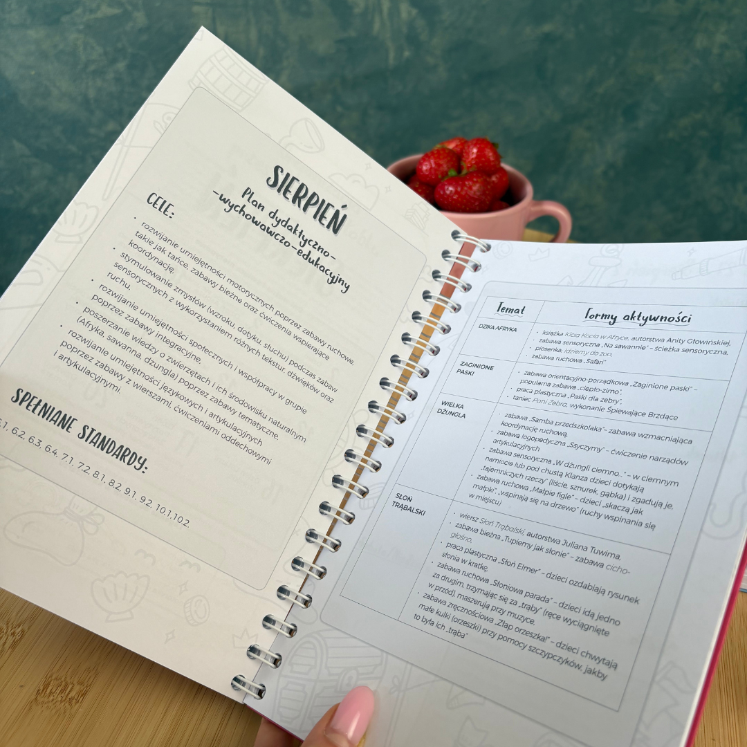 Jedyny i pierwszy na rynku kreatywny kalendarz-planer przygotowany z myślą o osobach pracujących z dziećmi do lat 3. Zaprojektowany, aby ułatwić Ci codzienną pracę z najmłodszymi. Wszystkie treści w Niezbędniku opracowaliśmy zgodnie z najnowszymi standardami sprawowania opieki nad dziećmi do lat 3, które obowiązują w żłobkach od początku 2026 roku.